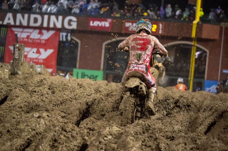 San Francisco aurait dû être LA COURSE d’Aaron Plessinger. Après tout, c’est bien lui le spécialiste de la boue, en tant qu’ancien pilote de GNCC, avec en plus des échasses à la place des jambes. Meilleur temps des qualifications, il n’a pourtant jamais vraiment réussi à faire la différence en finale. Décevant, par rapport à son potentiel.
