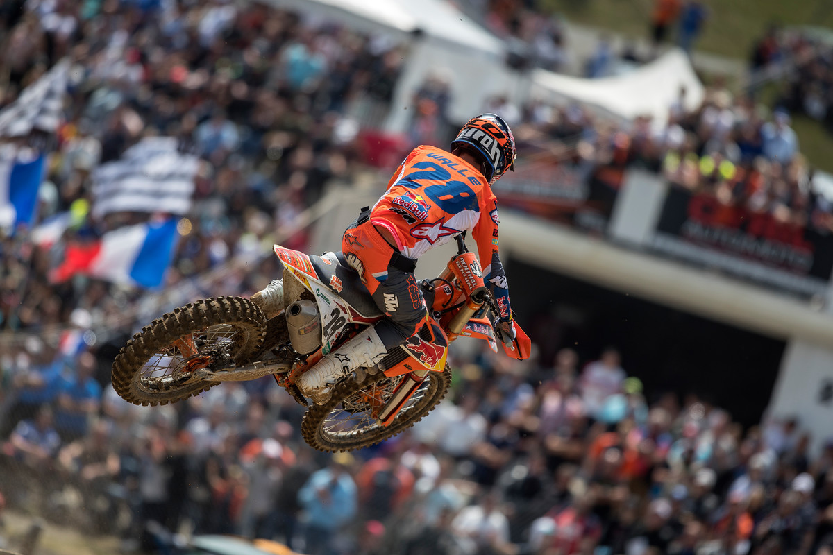 Il aura suffit de 7 GP pour que Tom Vialle, 18 ans, parvienne à convaincre les pontes du service sport de KTM, et notamment Robert Jonas, vice-président de la division Off-Road, de son potentiel. La preuve, le grand patron des Oranges a annoncé hier qu’il prolongeait le contrat de l’Avignonnais au sein du team officiel MX2 jusqu’en 2021. Le podium du tricolore dès le troisième GP de la saison en Angleterre, sa faculté à partir devant, sa maturité, sa gentillesse, son osmose avec le staff du team, Joël Smets en particulier, et son énorme potentiel capable de l’emmener jusqu’au titre mondial ont décidé le staff KT qu’il ne fallait pas trop attendre à le sécuriser pour éviter de se le faire débaucher par un team concurrent… Bref, Tom possèdera le pack « réussite » pendant encore deux ans, minimum, ce qui est un confort de travail inestimable.