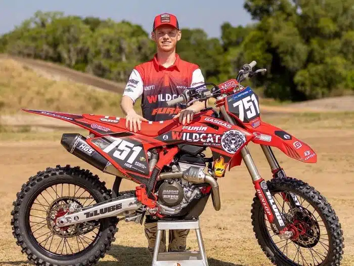 Si on est naturellement heureux pour le jeune Evan Ferry qu’il retrouve un guidon, difficile de ne pas se dire que ce transfert n’est pas franchement une progression dans sa bio… Le team Wildcat Racing a eu du mal à trouver assez de fonds pour finir la saison l’année dernière, on s’en souvient. Evan, quant à lui, a quitté une structure d’usine, certes nouvelle, qui lui assurait quand même un chèque à six chiffres par an pendant au moins deux ans, durée de son contrat. Tout n’était peut-être pas rose du côté de chez Triumph, avec notamment des soucis au niveau de l’approvisionnement des pièces, insuffisant, mais vu d’ici, ça parait tout de même mieux qu’une GASGAS préparée et un salaire qu’on devine assez minimaliste. D’autant que Jalek Swoll a montré en SX que la moto était capable.