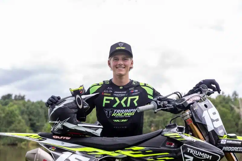 « Je suis vraiment excité par ce nouveau chapitre avec Triumph Racing America », confie Deacon Denno qui, selon les rumeurs US, est déjà au niveau des pros du team en MX. « Disposer d’un contrat sur trois ans qui m’accompagne jusqu’à mes débuts professionnels me donne beaucoup de confiance. Ce que l’équipe a accompli ces deux dernières saisons est impressionnant et je suis heureux d’en faire partie. Je suis reconnaissant pour cette opportunité et impatient d’entamer la suite de ma carrière avec Triumph. »