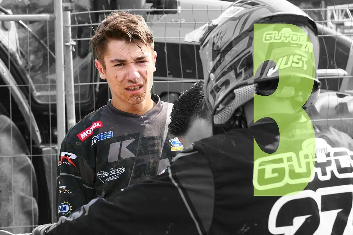 Chaud de chez chaud ce championnat de France Junior dont le dénouement est prévu ce week-end à Mothern, dans l’est. Après six épreuves, trois pilotes peuvent encore prétendre au titre. Thibault Benistant, le leader du championnat avec 235 points, Maxime Charlier, le second qui n’accuse qu’un déficit de 3 pions et enfin Calvin Fonvieille, le dernier lascar sur le podium avec 226 points au compteur. Rien n’est fait ! Alors en cette veille de duel sous haute tension, on a appelé les gaziers pour savoir s’ils dormaient bien la nuit et s’ils avaient fourbi leurs armes. Paroles en ce jeudi midi à l’albigeois Calvin Fonvieille, l’homme qui a signé le plus de victoires de manches, quatre, et d’épreuves, deux, pour le moment !