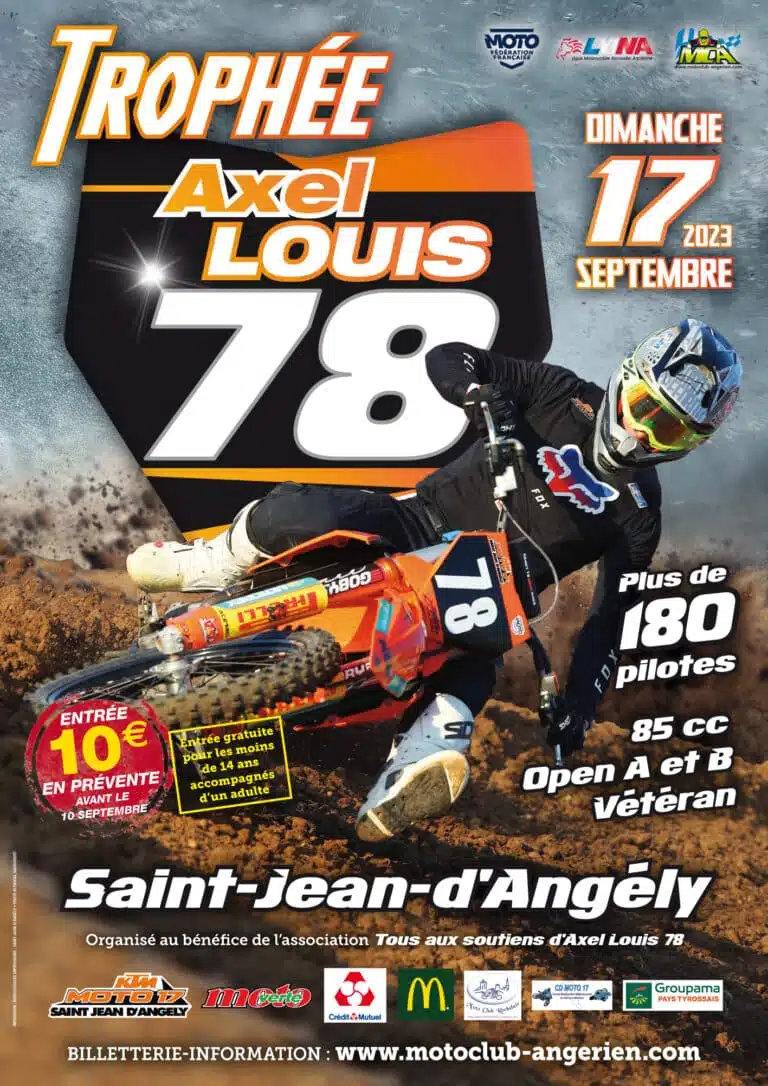 Le circuit du Puy de Poursay à Saint Jean d’Angély va accueillir ce dimanche le Trophée Axel Louis. Une manière pour le MC Angérien de soutenir son pilote Axel Louis, touché aux cervicales lors de l’ouverture du championnat de France Elite MX2 à Lacapelle-Marival le 5 mars dernier. Depuis, le jeune pilote de 19 ans, passé par le team 114 Motorsports ou encore 737 Performance, a perdu l’usage de ses membres inférieurs et doit faire face à de lourdes dépenses financières pour acheter du matériel médical et s’adapter à sa nouvelle situation.