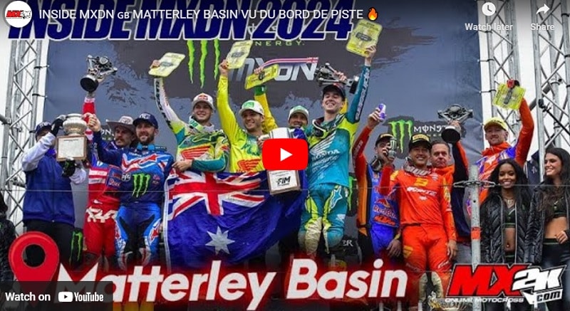 Inside MXDN en Angleterre ! Notre jeune spécialiste de la vidéo, Lucas, vous emmène avec lui pour vous faire découvrir le Motocross des Nations 2024 à Matterley Basin du bord de la piste, comme si vous y étiez, et avec les pass qui vont bien ! Une épreuve mythique avec un plateau qui cette année, il faut le dire, était à la hauteur de l’événement, avec des noms comme les frères Lawrence, Eli Tomac, Aaron Plessinger, Cooper Webb, Ken Roczen, Simon Laengenfelder, Max Nagl, Tim Gajser, Jeffrey Herlings, Kay de Wolf, Glenn Coldenhoff, Romain Febvre, Tom Vialle, Maxime Renaux, Jorge Prado, Ruben Fernandez, Jeremy Seewer, Andrea Adamo, Lucas Coenen, Jago Geerts et tous les autres… le tout sur un circuit magnifique, situé au milieu de nulle part mais avec une visibilité totale, rempli d’ornières et de gros sauts. Lucas en a pris plein les yeux ce week-end, et vous le fait partager en vidéo ! N’hésitez pas à nous dire ce que vous avez pensé de ces images et de la victoire Australienne. Malheureusement, la France a connu quelques déboires et ne termine qu’à la cinquième place. On ne peut pas gagner chaque année. Le rendez-vous est pris l’an prochain à Ironman, aux US, et en 2026 du côté d’Ernée.