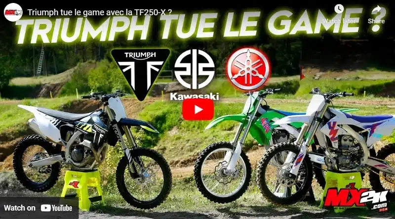 La Triumph TF 250-X fait énormément parler d’elle depuis sa sortie, et plutôt en bien. Encensée par la critique française et même mondiale suite à la prise de contact organisée en Floride par l’usine Triumph, la toute nouvelle TF250-X se devait de passer un deuxième test, après un autre passage entre nos mains. A domicile, cette fois, et avec deux bases pour la comparer, les très efficaces Kawasaki 250 KX et Yamaha 250 YZ-F, toutes les deux valeurs sûres de la catégorie. Parce qu’à vaincre sans péril, elle Triumph sans gloire ? Notez que vous pourrez retrouver cet essai complet dans le #14 de Motocross by MX2K, bientôt disponible en version tablette ici et en version papier.