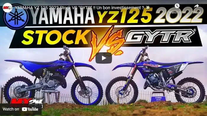 Notre nouvelle vidéo a débarqué hier soir, en toute discrétion, sur notre chaîne YouTube MX2K : l’essai d’une Yamaha 125 YZ 2022 entièrement équipée d’un kit hautes performances GYTR. GYTR, c’est quoi ? « Genuine Yamaha Technology Racing ». Comprenez par là que le catalogue GYTR est composé « d’éléments développés par la marque elle-même en vue d’optimiser les performances de ses machines standards », comme on dit dans les livres. Echappement, gicleurs, admission, cylindre, culasse, allumage… Tout y est, toutes les pièces nécessaires pour booster le bloc de la petite Yamaha YZ 125. Le tout pour tout juste moins de 3000 €, 2549 € si l’on en croit le site internet de Yamaha Motor Europe. L’avantage étant d’avoir du matériel fabriqué spécifiquement par Yamaha pour des Yamaha, bien évidemment plug and play. Le site internet promet que « Tous les produits GYTR® sont contrôlés individuellement par les ingénieurs qualité GYTR® pour s’assurer qu’ils répondent aux normes de qualité les plus élevées ». On ne rigole pas trop avec la qualité chez les Japonais… Mais le jeu en vaut-il la chandelle ? C’est bien tout l’enjeu de cet essai !