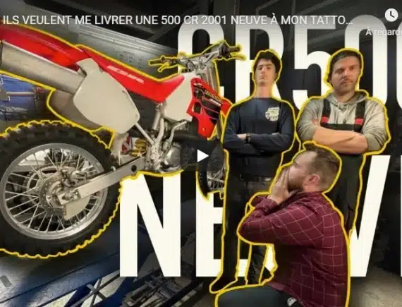 Croiser la route d’une Honda 500 CR 2001 neuve, c’est comme voir une licorne sur le périphérique parisien ou une blogueuse mode sur un enduro extrême : extrêmement rare. C’est pourtant ce qu’à filmer JeeWee, regardez. La moto est à vendre sur leboncoin au tarif de 18 000 €. Voilà qui fait cher le vibromasseur.