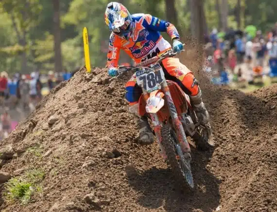 Cependant, Marvin Musquin était à « deux tours » de remporter l’épreuve puisqu’après s’être classé deuxième de la première manche, il va longtemps mener la seconde confrontation avant de partir à la faute à deux tours de la fin et laisser ainsi la victoire à son coéquipier du jour. Malgré sa seconde place, Marvin n’aura pas réussi à combler son retard sur Eli Tomac qui avec une sixième place remporte le titre de champion MX US 450cc.