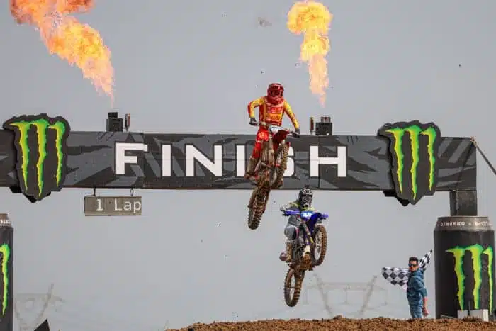 C’est toutefois une vieille connaissance, la championne en titre Courtney Duncan, désormais sur une Yamaha, qui a rapidement pris les commandes de la manche d’ouverture du championnat, devant Lotte Van Drunen qui s’est offert le premier holeshot de la saison. Lynn Valk et Daniela Guillen se sont ensuite imposées sur Van Drunen pour se classer respectivement deuxième et troisième après quelques virages, suivies par la légende Kiara Fontanesi. Après quelques tours, Courtney Duncan s’est un peu échappée, le temps que Daniela Guillen se mette en action et revienne petit à petit dans la roue de la championne en titre, qui est finalement parti à la faute au moment où l’Espagnole tentait son attaque. Daniela Guillen remporte donc la manche devant Lotte van Drunen, revenu troisième, qui a profité de la chute de Duncan, cette dernière complétant le podium. On notera la belle onzième place de la jeune April Franzoni. Mathilde Martinez quatorzième, Mélanie Pérez 26e.