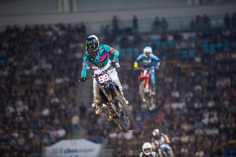 C’est pourtant Eli qui s’offre le dernier holeshot de la soirée, mais le néo pilote KTM va devoir céder face à un Christian Craig au contraire très à l’aise sur sa nouvelle Honda. Incisif, il s’est d’abord débarrassé de son pote Haiden Deegan avant d’aller chercher Eli à la régulière et s’imposer. Eli Tomac qui va également voir Haiden Deegan et Ken Roczen le doubler avant la fin de manche. De quoi offrir le général de la soirée à un excellent Ken Roczen, après trois manches excitantes ! Deuxième place de la soirée pour Christian Craig, puis Cooper Webb, Eli Tomac, Joey Savatgy et Haiden Deegan. DNF pour Jason Anderson dans cette finale, victime d’un problème technique et percuté sans gravité.