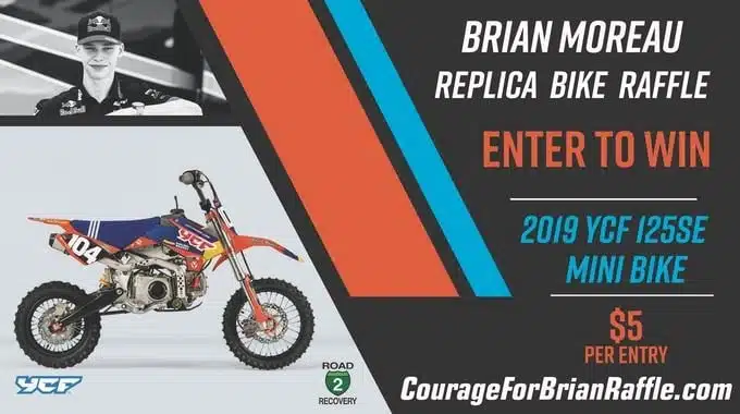 Yannick Coquard, le boss d’YCF, a fait don d’une YCF 125 SE à Road2Recovery pour organiser une tombola dont les bénéfices aideront à payer les frais médicaux de Brian Moreau.